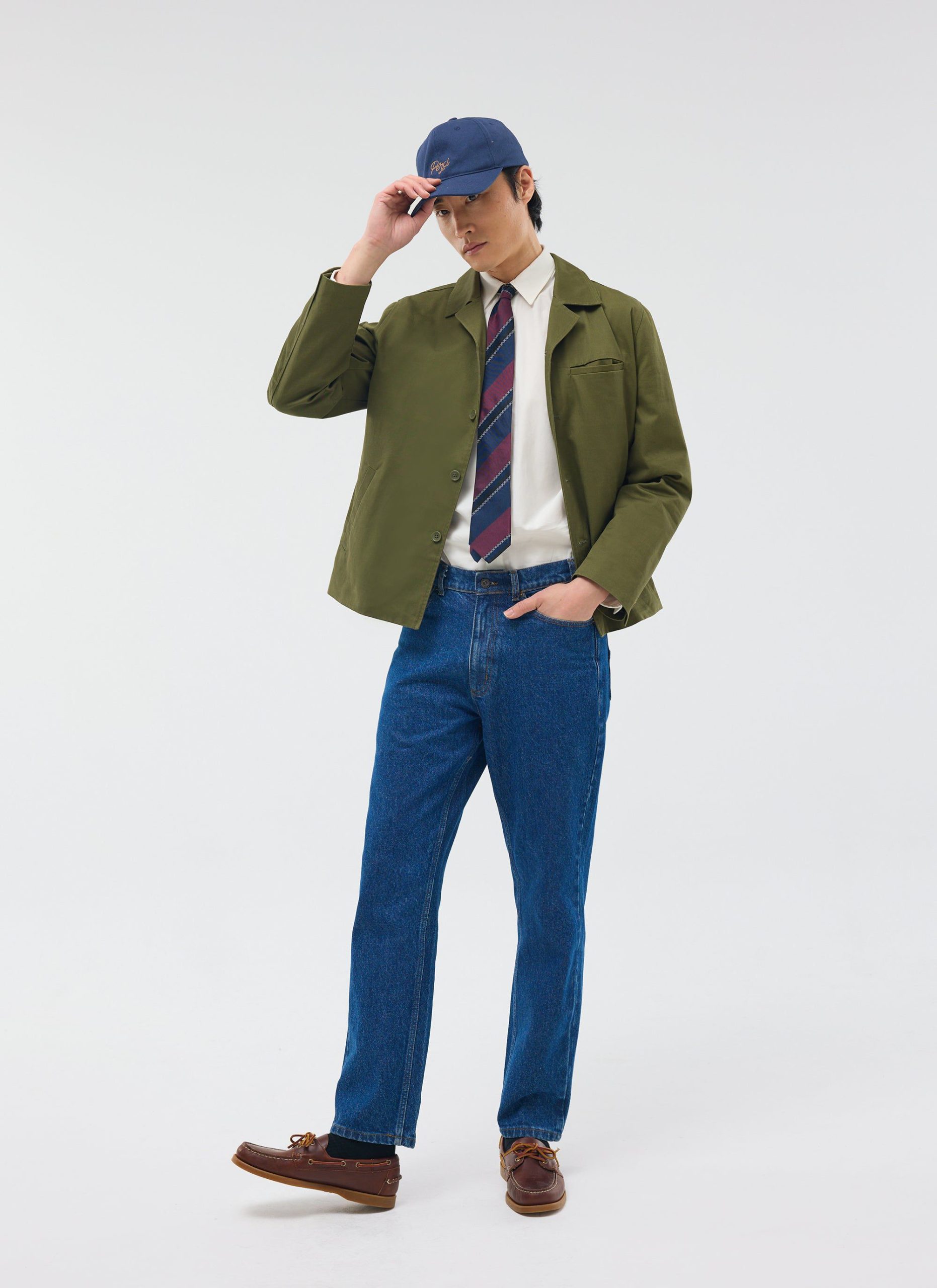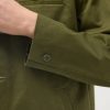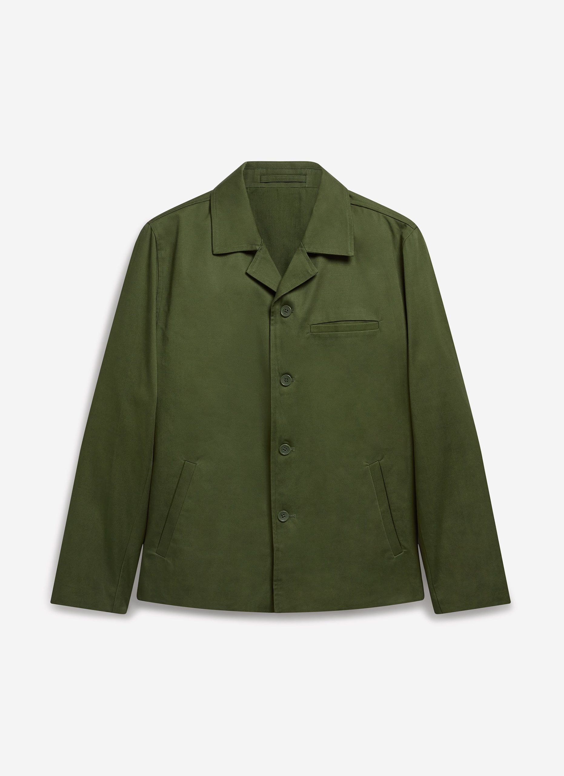 - Features: Men’s Chore Jacket in Green. This Workwear Jacket is made from a 100% cotton twill for a heavyweight feel and is perfect for spring and summer. The khaki jacket features an open collar, perfect for wearing with a shirt and tie, custom Percival buttons and jetted pockets. This Heavyweight Cotton Jacket fits true to size and is available in suit chest sizing.