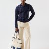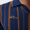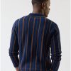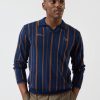 - Features: Men’s long sleeve knitted polo shirt in navy blue, featuring a ribbed collar, open quarter placket, and embroidered knit texture. Made from 100% cotton for comfort and breathability. This regular-fit, mid-weight polo draws on classic football styling and is perfect for transitional weather, layering easily and attending all types of events.