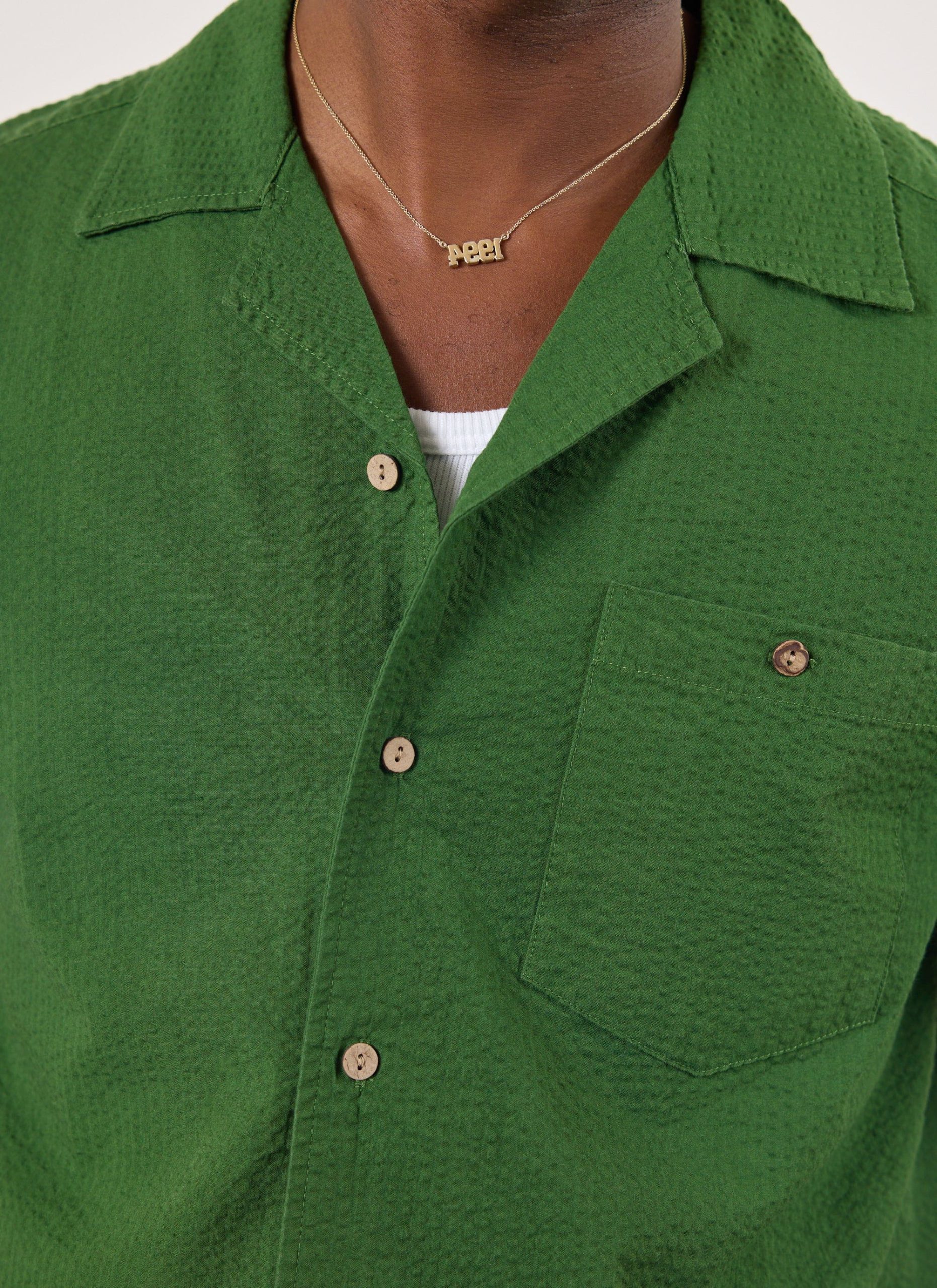 - Features: Men’s shirt with a cuban collar. Finished with short sleeves, corozo buttons and a front chest pocket, this cuban shirt is ideal for the spring and summer months, and is a wardrobe staple.