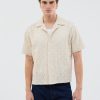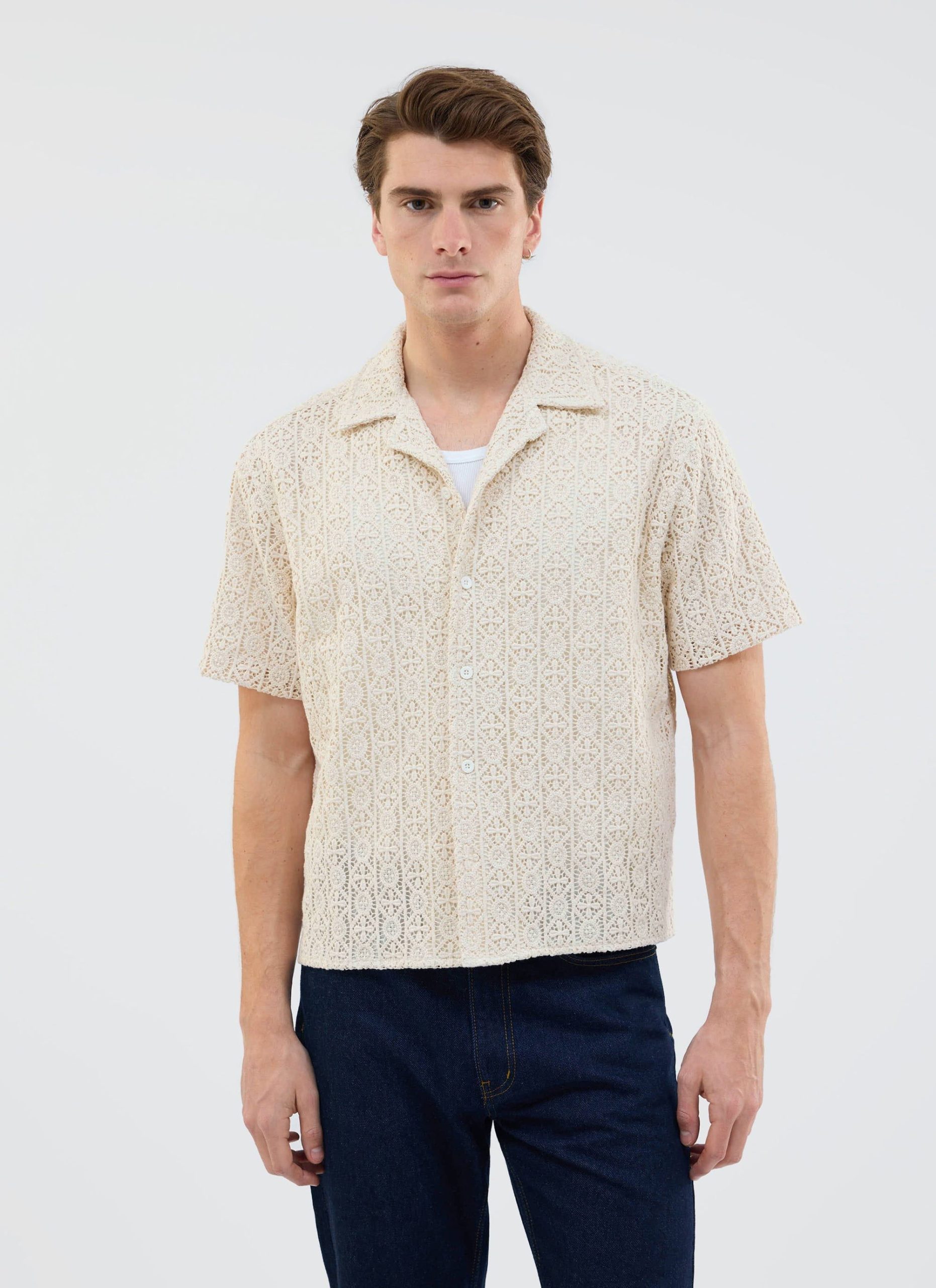 - Features: Men’s cotton crochet shirt, featuring a custom Percival design with intricate crochet patterns uniquely arranged across the button down. Designed in a classic Cuban shirt fit with an open collar, it offers both roominess and breathability. Ideal for layering over a vest or white tee. A timeless design perfect for summer seasons, this cream cuban shirt pairs effortlessly with any piece in your wardrobe and will suit every occasion.