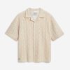 - Features: Men’s cotton crochet shirt, featuring a custom Percival design with intricate crochet patterns uniquely arranged across the button down. Designed in a classic Cuban shirt fit with an open collar, it offers both roominess and breathability. Ideal for layering over a vest or white tee. A timeless design perfect for summer seasons, this cream cuban shirt pairs effortlessly with any piece in your wardrobe and will suit every occasion.