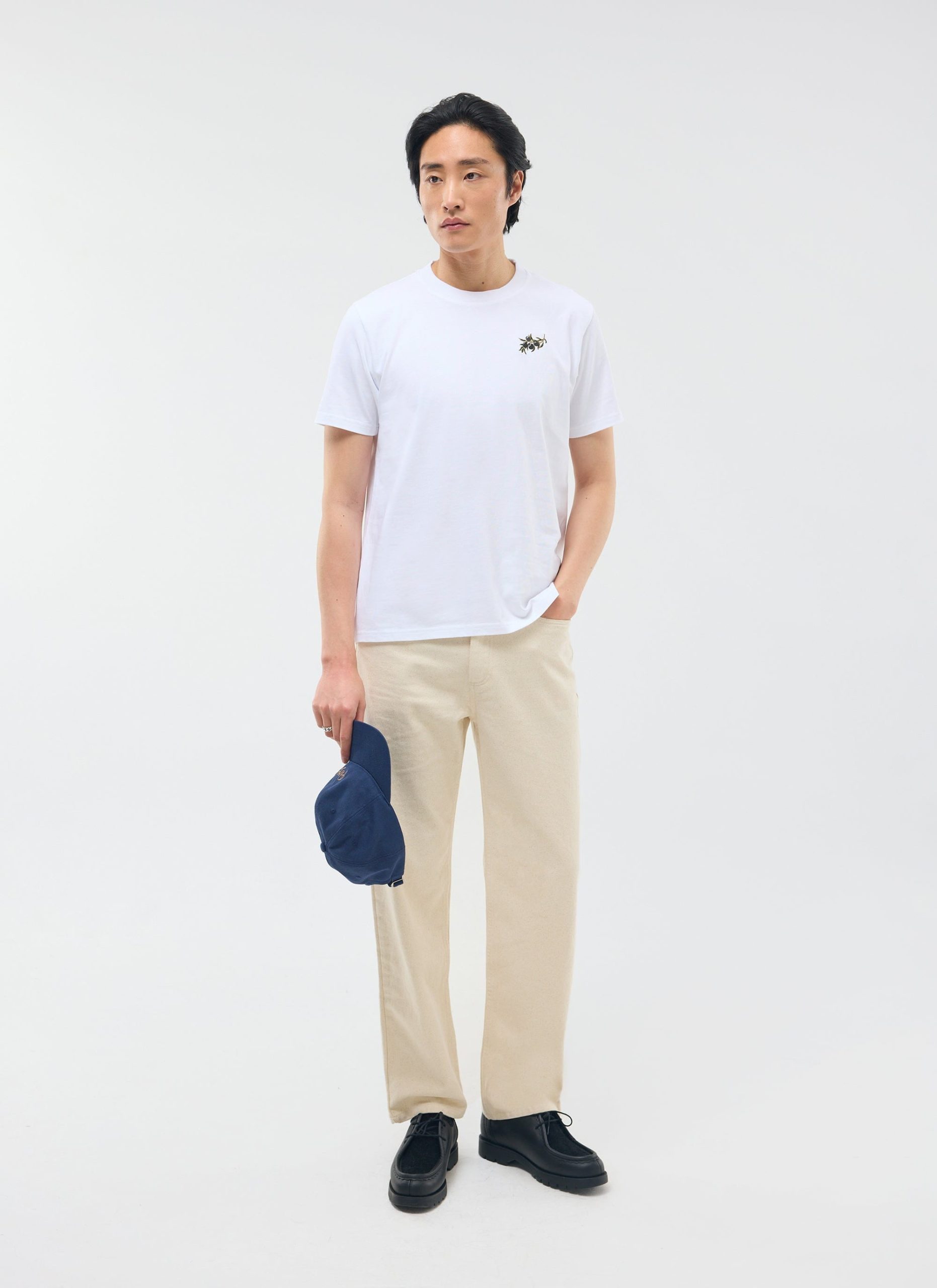 - Features: Men’s heavyweight white T-Shirt featuring intricate olive tree embroidery. Crafted from 100% organic cotton, this durable short-sleeve tee offers a premium feel. Designed in a regular fit, it pairs effortlessly with any outfit for any occasion.