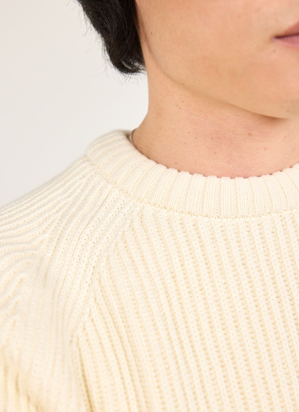 - Features: Made in Portugal from 100% organic cotton in a chunky knit ribbing construction. This cream jumper offers a comfortable and stylish option for cooler seasons with its classic crew neck and raglan design.
