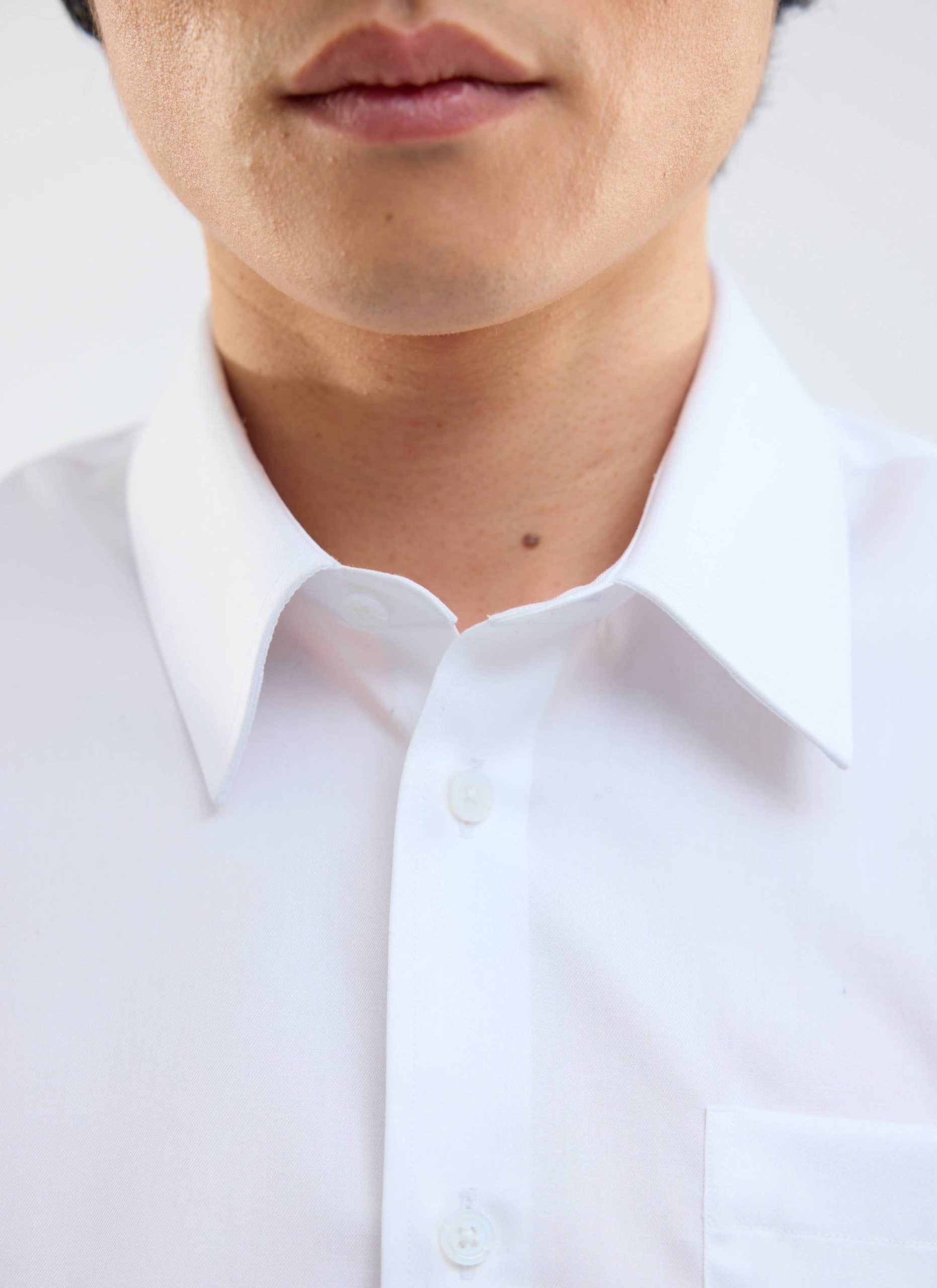 Crisp by design. The collar, cuffs and placket of this shirt are reinforced with a fused interlining — basically a layer that’s been heat-pressed (or “baked in”, as the factory folks say) to hold everything in shape. It gives the shirt structure where it matters most, so you get that sharp, just-ironed look for longer. No floppy collars, no sad cuffs — just a shirt that stands up straight, so you don’t have to.