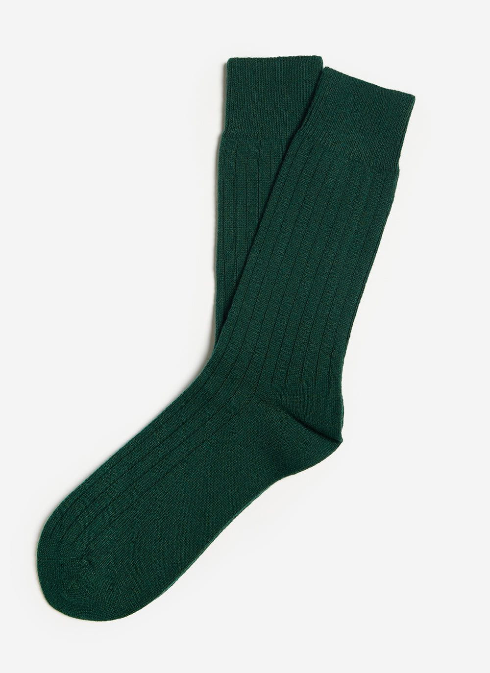 - Features: Men’s premium green cashmere rib socks, crafted from a high-quality cashmere blend. These cozy socks provide exceptional warmth and softness, making them the perfect accessory for keeping your feet comfortable during cold weather.