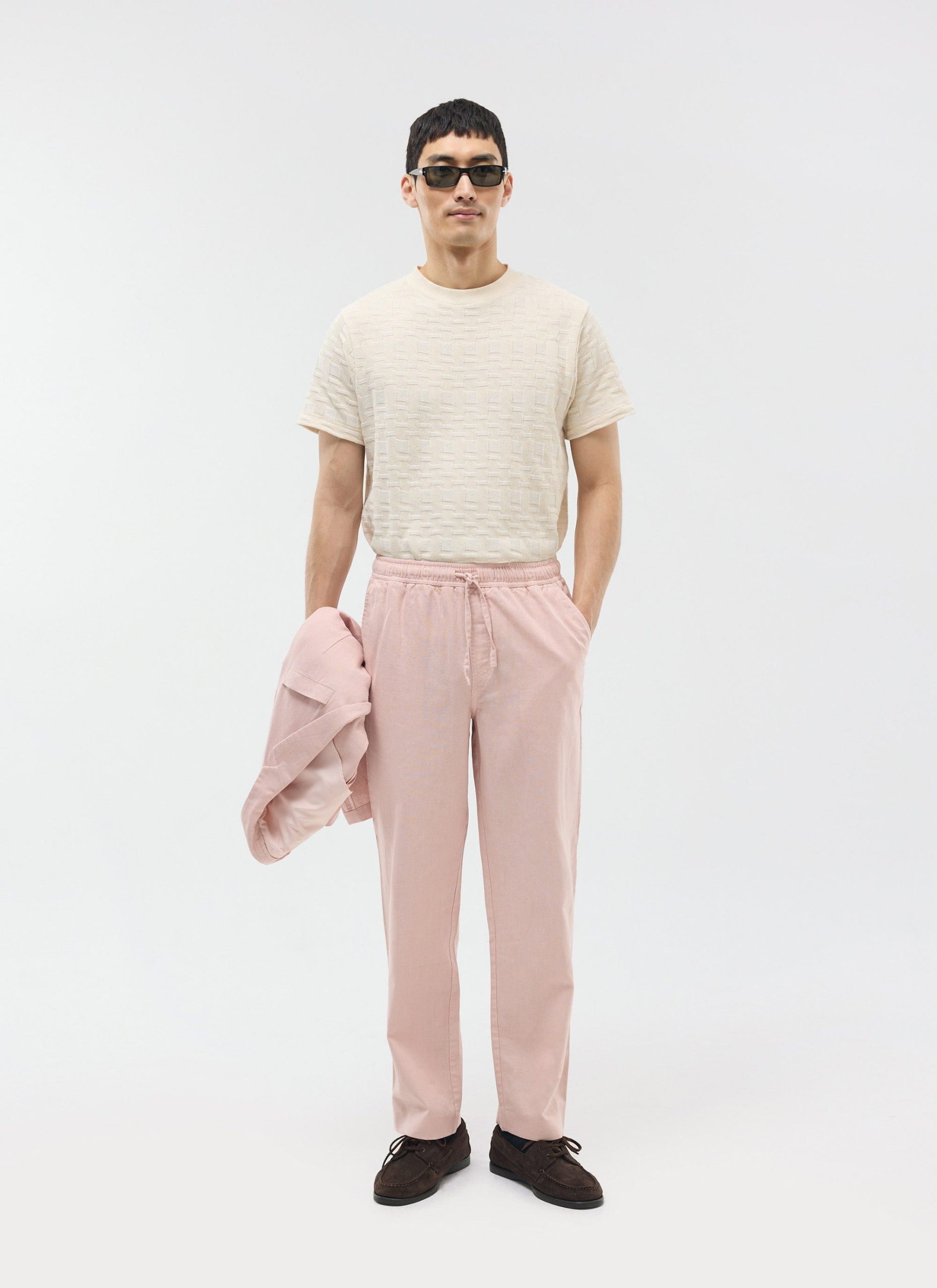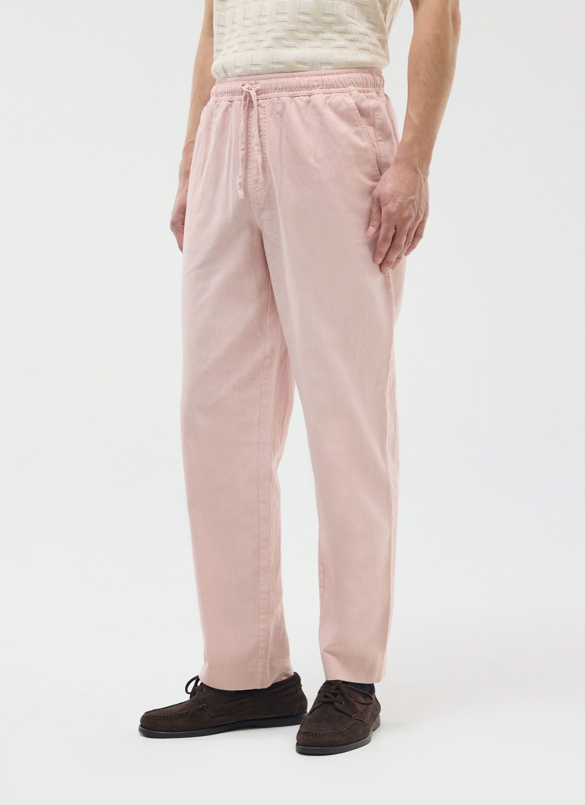 - Features: Men’s Casual Linen Trousers in Dusty Pink, crafted from a breathable and lightweight linen blend. Designed with a wide-leg fit, these versatile trousers are perfect for everyday wear and can be styled for various occasions. Featuring a comfortable drawstring waist, they make a bold statement while remaining a timeless wardrobe staple for every man.