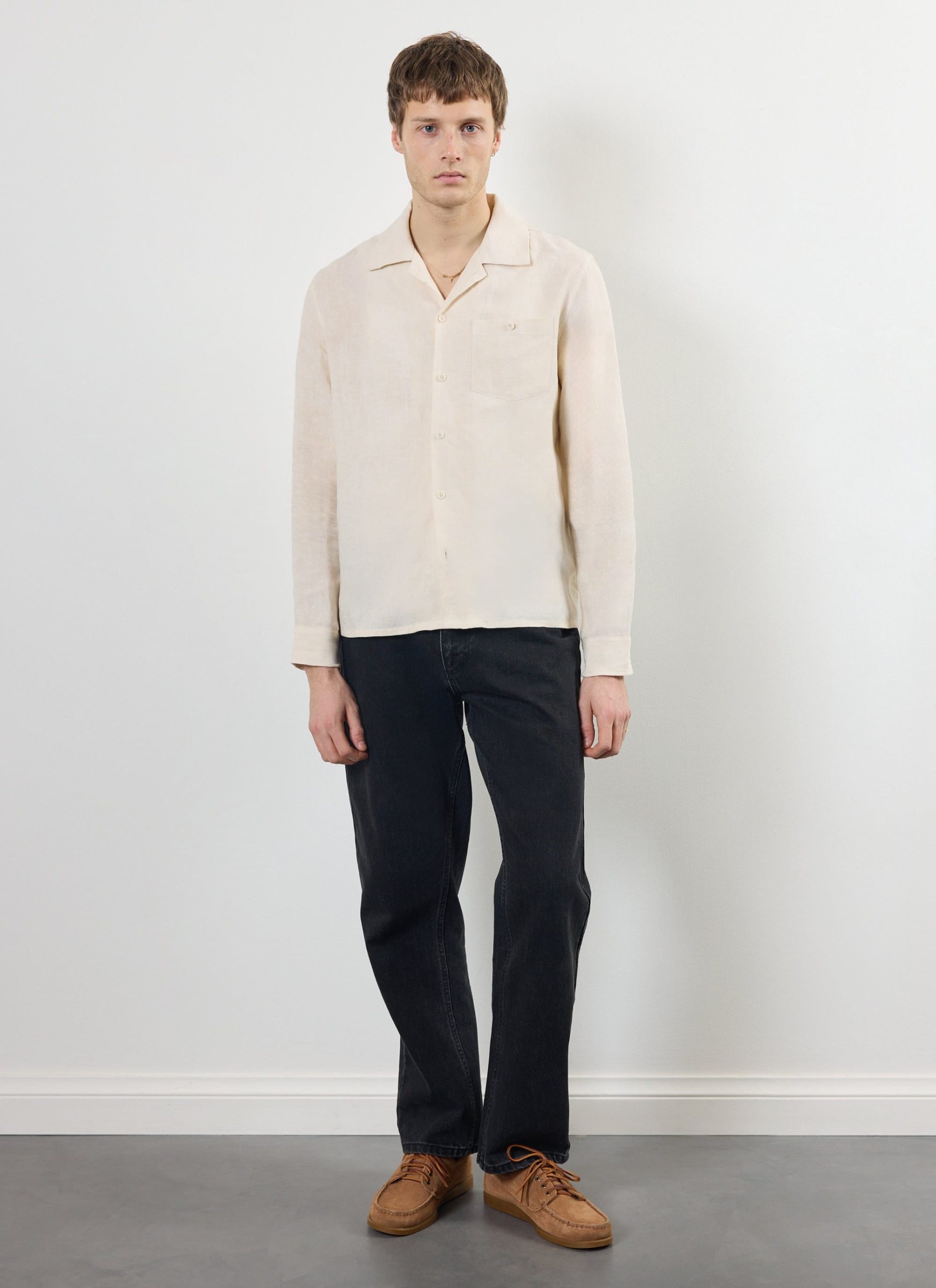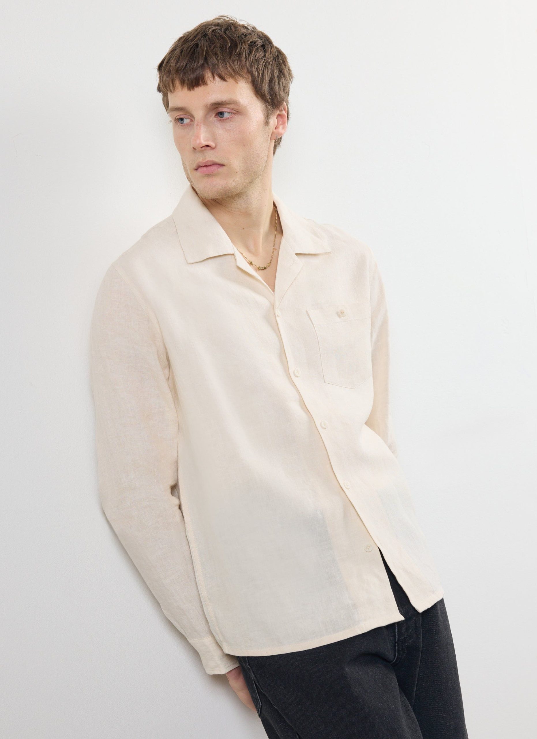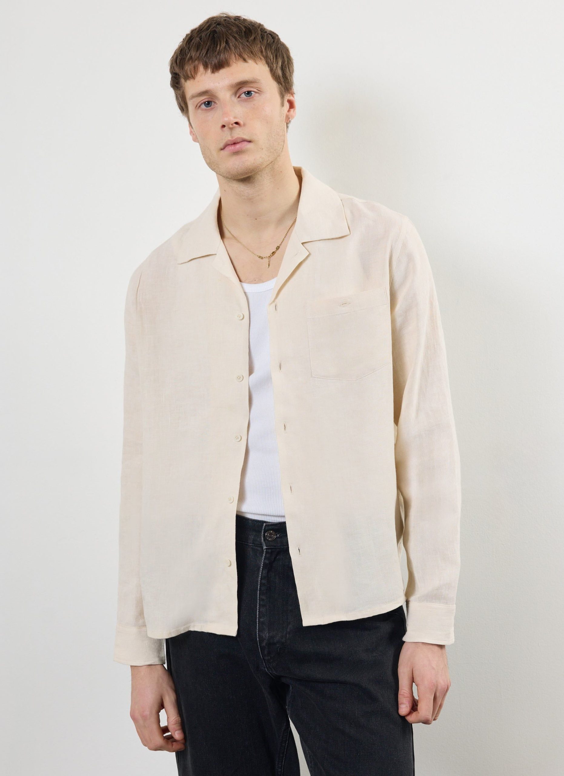 Percival Men’s Long Sleeve Cuban Linen Shirt | Cream