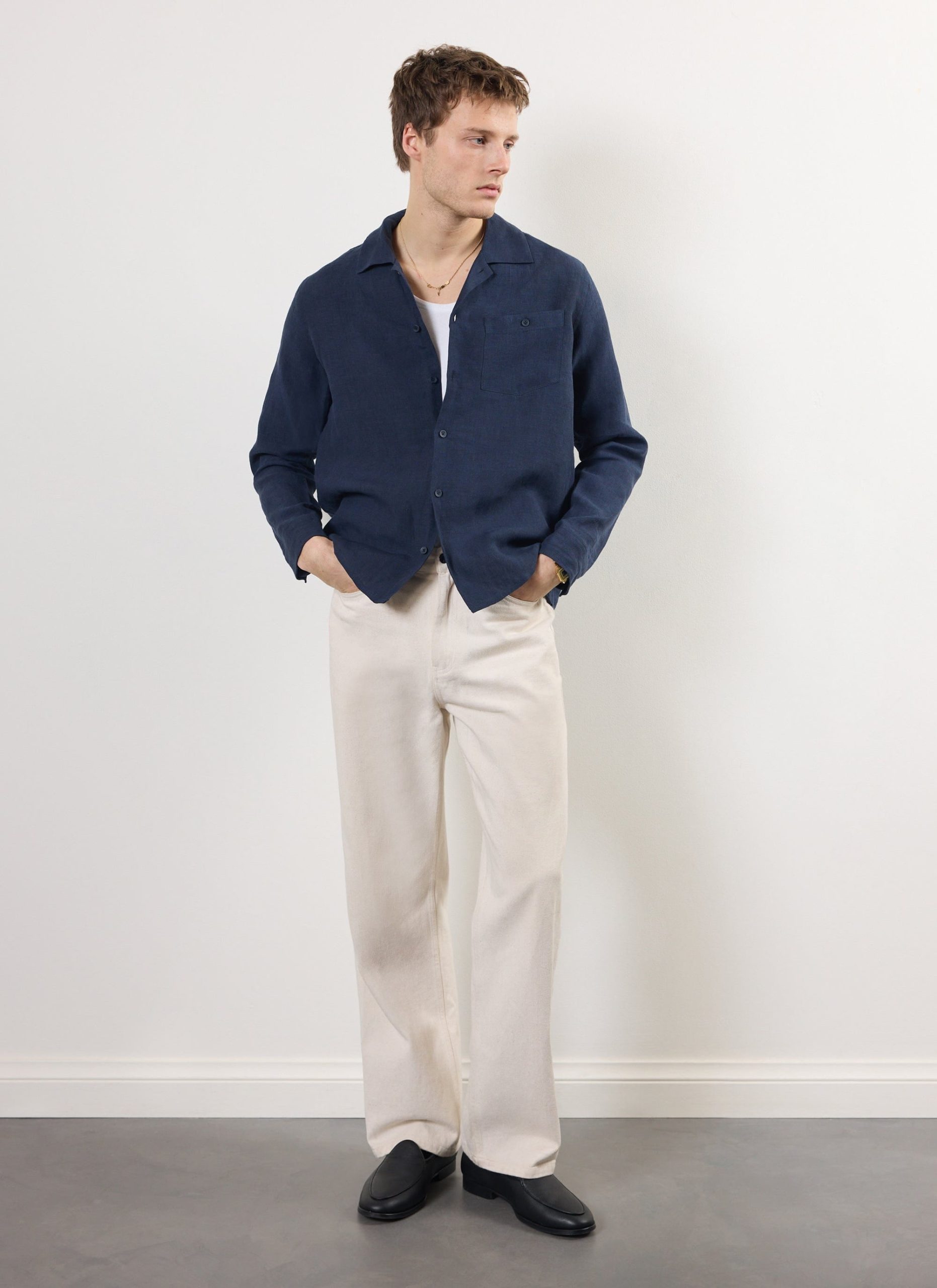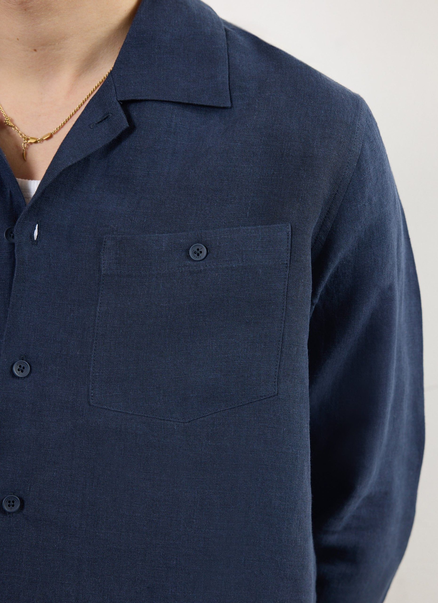 - Features: Men’s long sleeve cuban collared shirt, corozo buttons and a front chest pocket, this stone linen shirt is ideal for the spring and summer months and is an easy-to-wear staple.