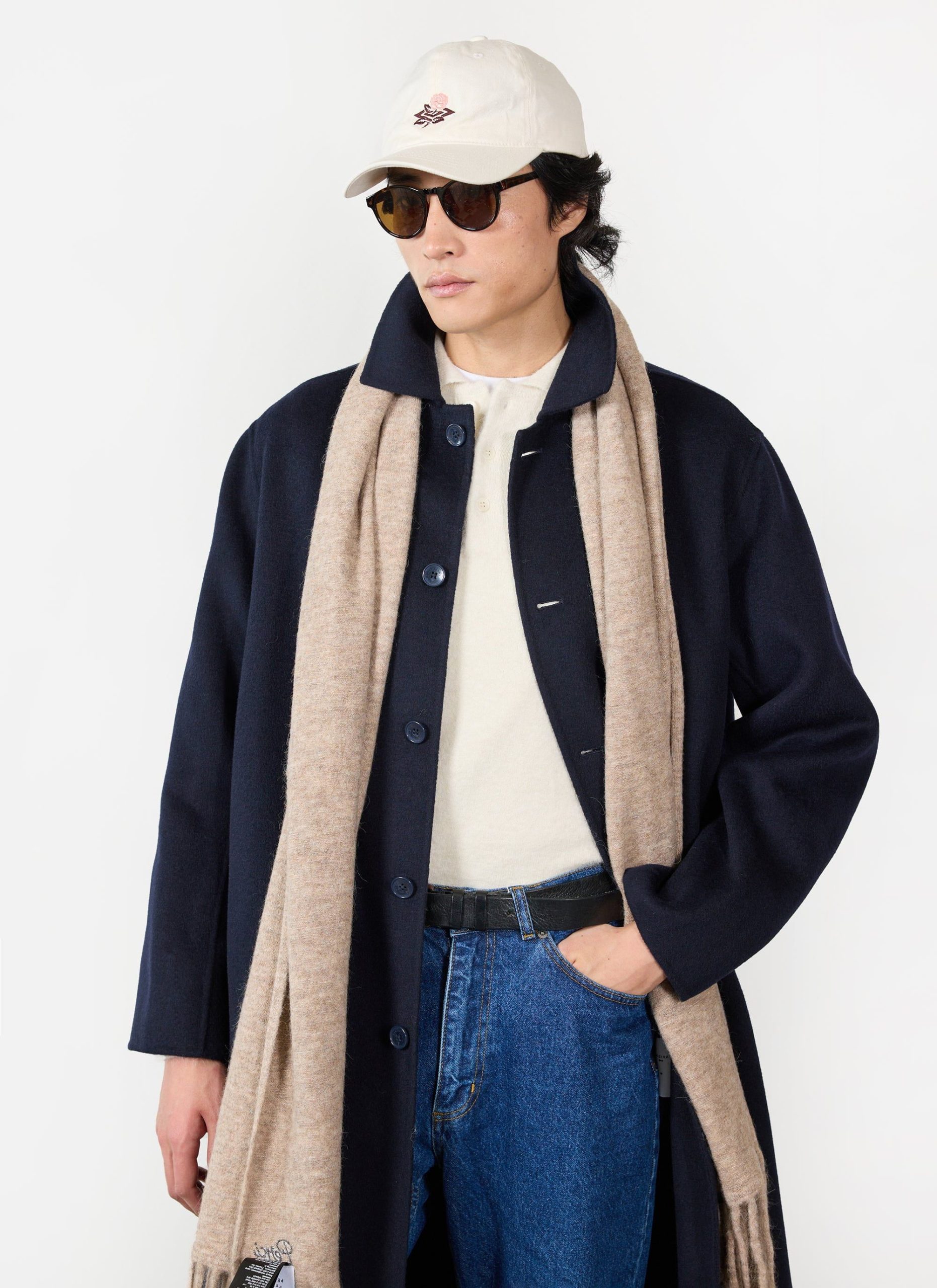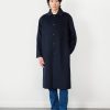 Winter can suck, dark days, cold, but let us celebrate that. Look at this layering, more layers than uncle Onion Orion, and it is much better looking. Cut in a 100% wool, classic navy trench coat, come-car-coat, goes with everything, nice length, beautiful flow, fair price per wear. Throw it over a smart suit, or smother it over winter sweat suit. It is your coat, the coat of the winter.