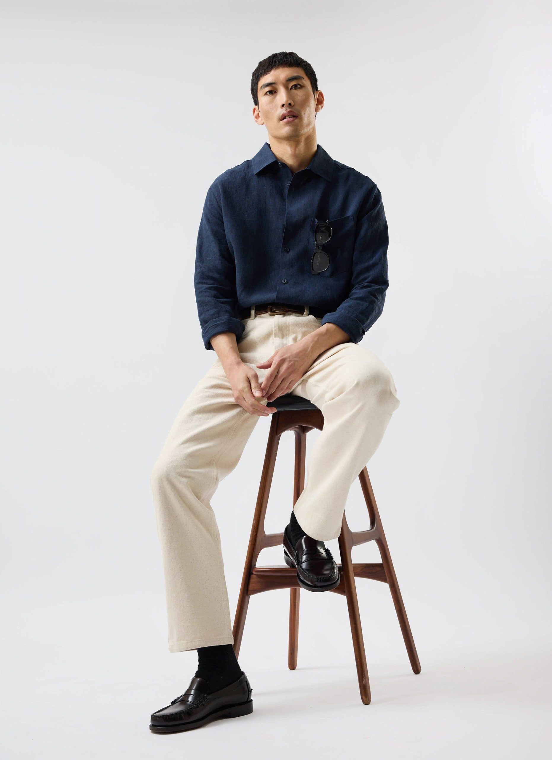 Navy linen — sharp but chilled, like you’ve got plans but no rush getting there. This shirt’s less about dressing up, more about letting go. Wear it open over a tee, buttoned for dinner, or just chuck it on post-swim with wet hair and zero worries. It’s the shirt that says: I could be anywhere, but I’m exactly where I need to be.