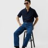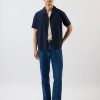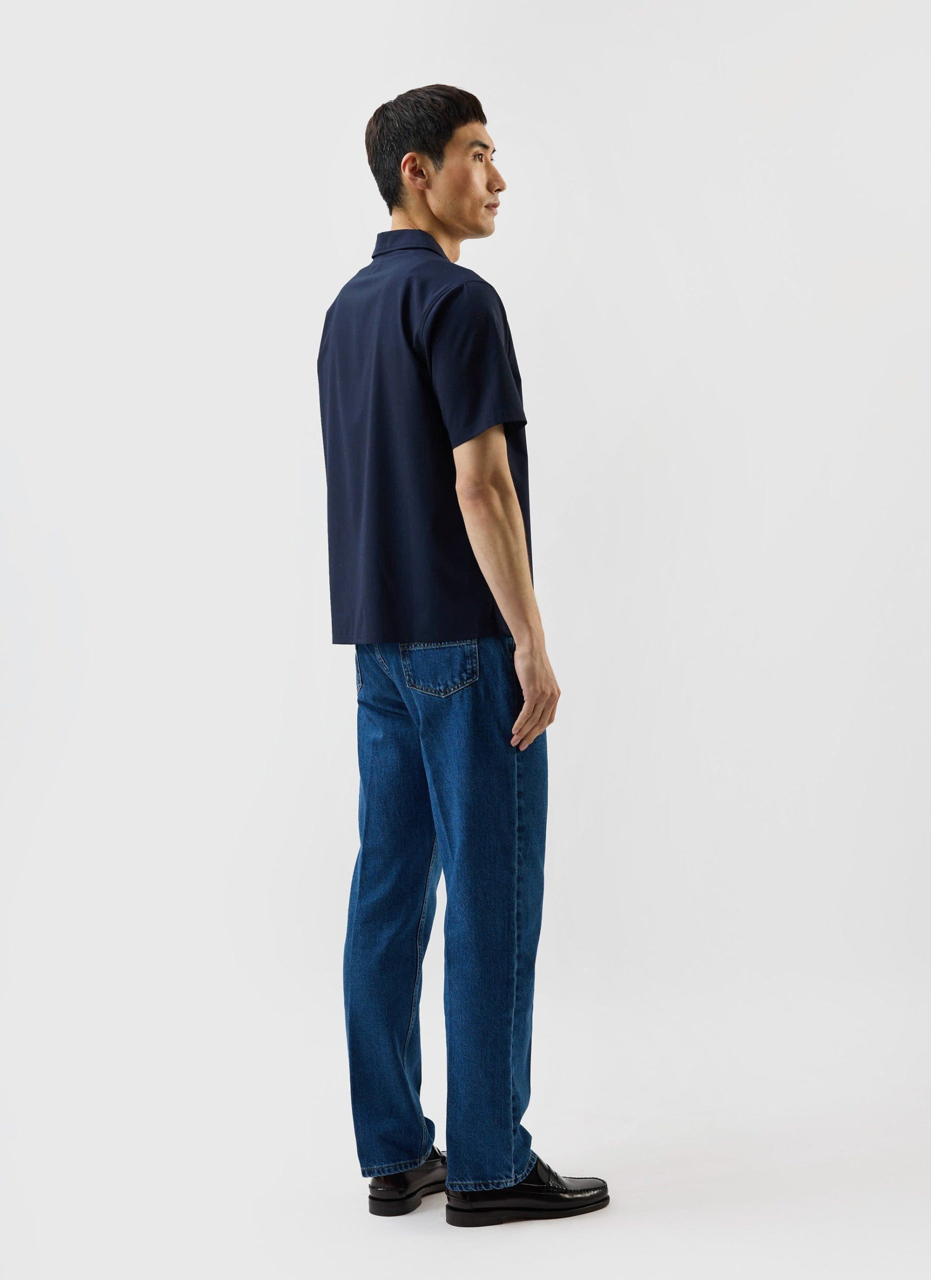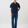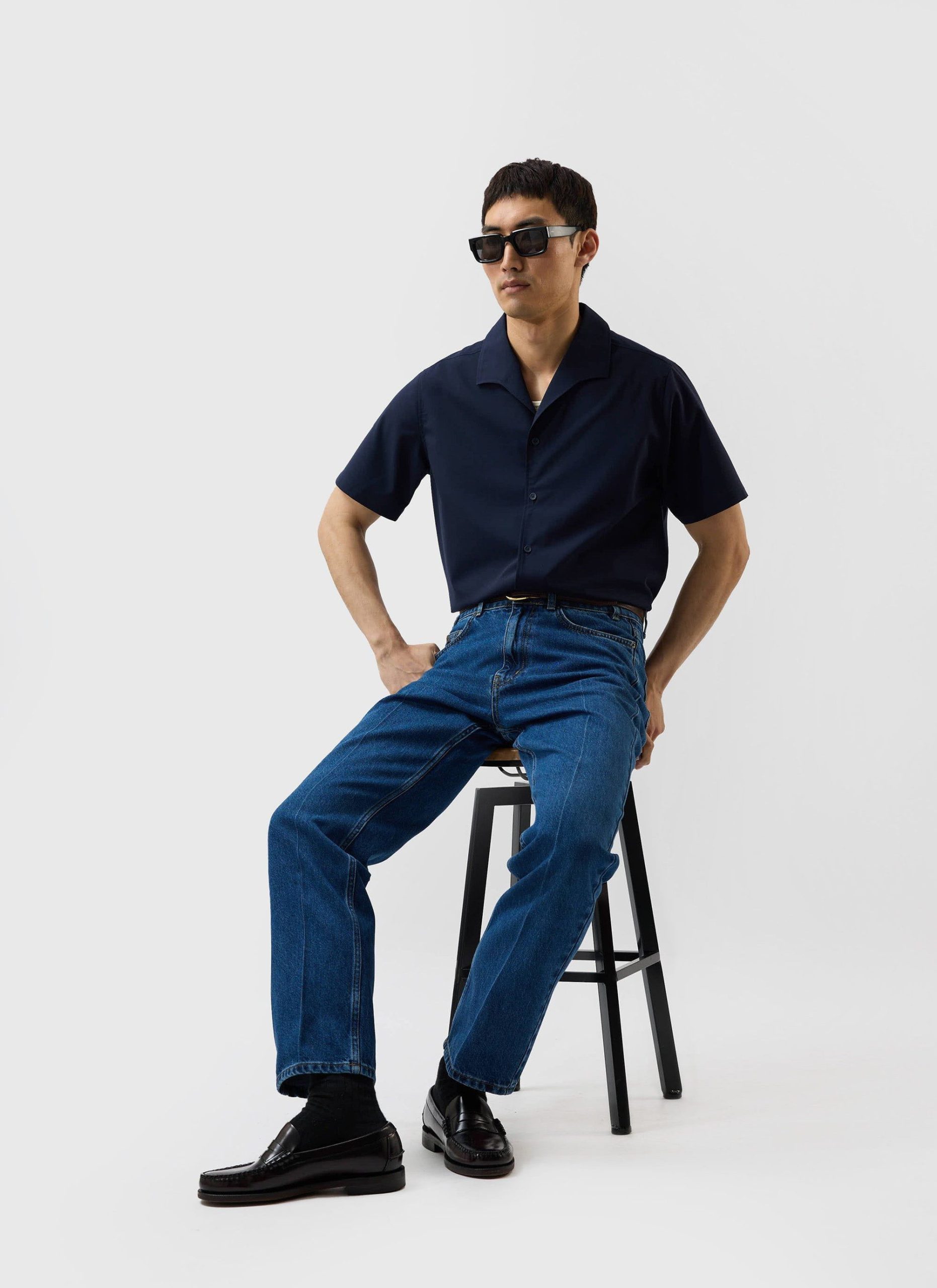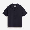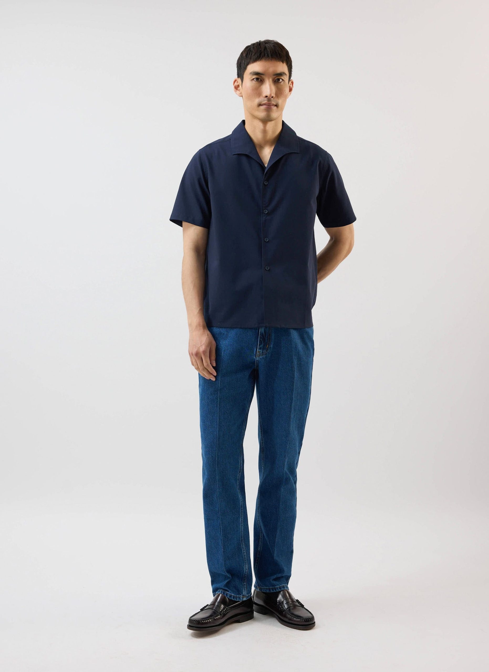 - Features: Men’s Cuban Collar Drape Shirt in Navy Blue, as part of the . Inspired by classic American workwear, this relaxed fit short sleeve shirt is cut from a lightweight wool blend for an effortless drape and breathable wear. Featuring custom Percival buttons and modern take on the cuban collar, a timeless piece that will amplify your summer style.
