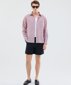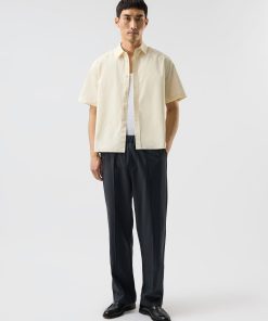 - Features: Men’s Cuban Collar Drape Shirt in Navy Blue, as part of the . Inspired by classic American workwear, this relaxed fit short sleeve shirt is cut from a lightweight wool blend for an effortless drape and breathable wear. Featuring custom Percival buttons and modern take on the cuban collar, a timeless piece that will amplify your summer style.