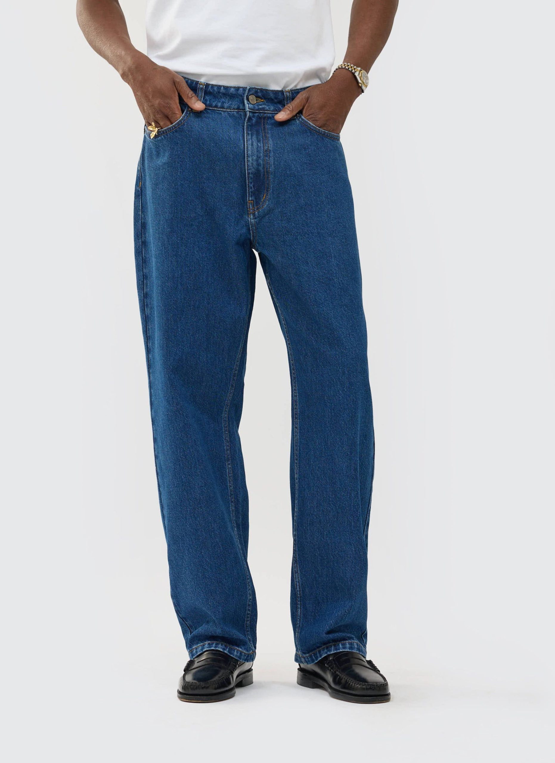 - Features: Men’s relaxed fit jeans in mid wash blue that take inspiration from classic dad jean styling, updated with modern details for everyday wear. Cut in a relaxed, loose fit, they feature traditional back patch pockets, signature Percival embroidery branding, and a premium leather logo patch for a refined finish. Designed for year-round versatility, these mid wash jeans pair effortlessly with everything from tees to tailored jackets, offering a laid-back look that balances comfort and style.