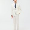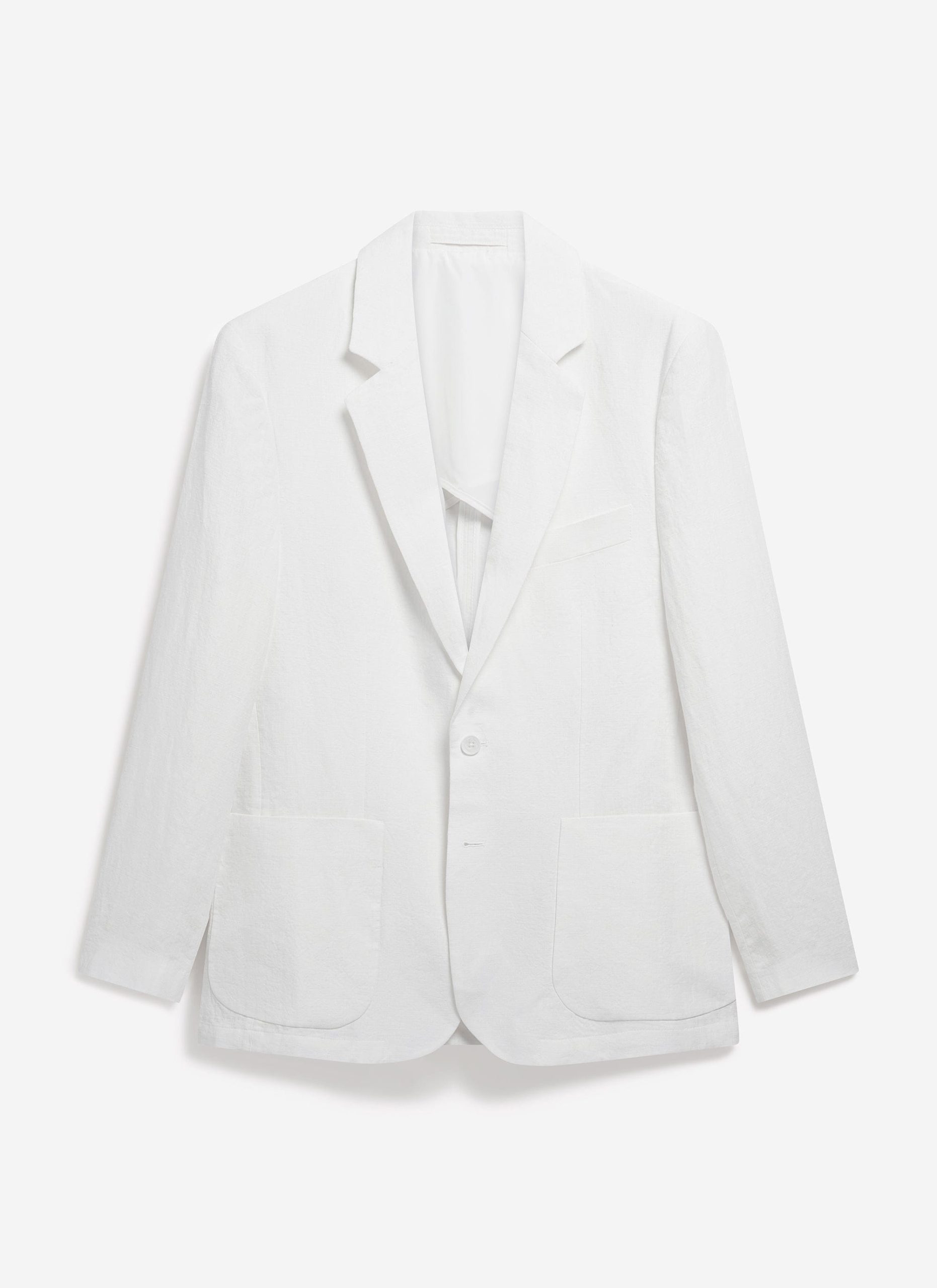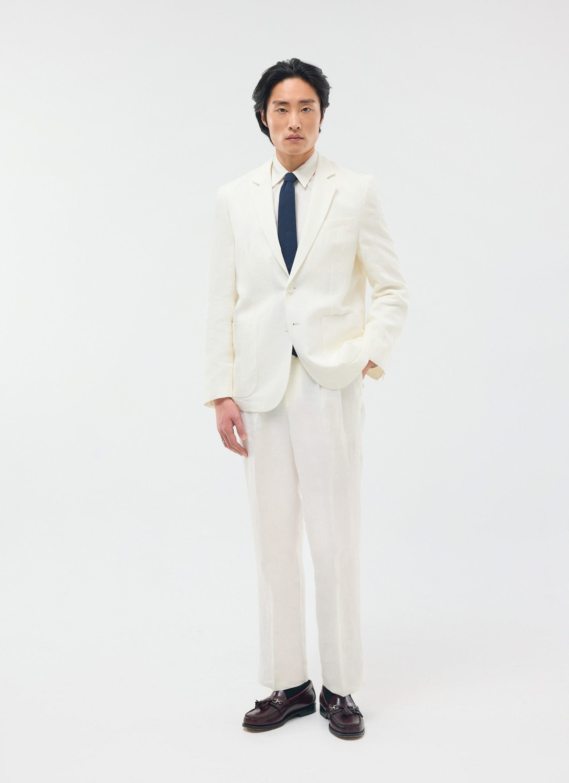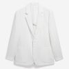 - Features: Men’s Linen Blazer in White, made from a lightweight 100% Linen fabric in a pure white colourway. Our White Linen Suit Jacket is made with increased body and sleeve widths for comfort and thin shoulder pads for a structured shape. The White Relaxed Blazer is finished with back vents, chest welt pockets, side patch pockets and button-fastening. This lightweight Linen Suit Jacket is ideal for Weddings & Smart Dressing all year round.