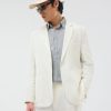 - Features: Men’s Linen Blazer in White, made from a lightweight 100% Linen fabric in a pure white colourway. Our White Linen Suit Jacket is made with increased body and sleeve widths for comfort and thin shoulder pads for a structured shape. The White Relaxed Blazer is finished with back vents, chest welt pockets, side patch pockets and button-fastening. This lightweight Linen Suit Jacket is ideal for Weddings & Smart Dressing all year round.