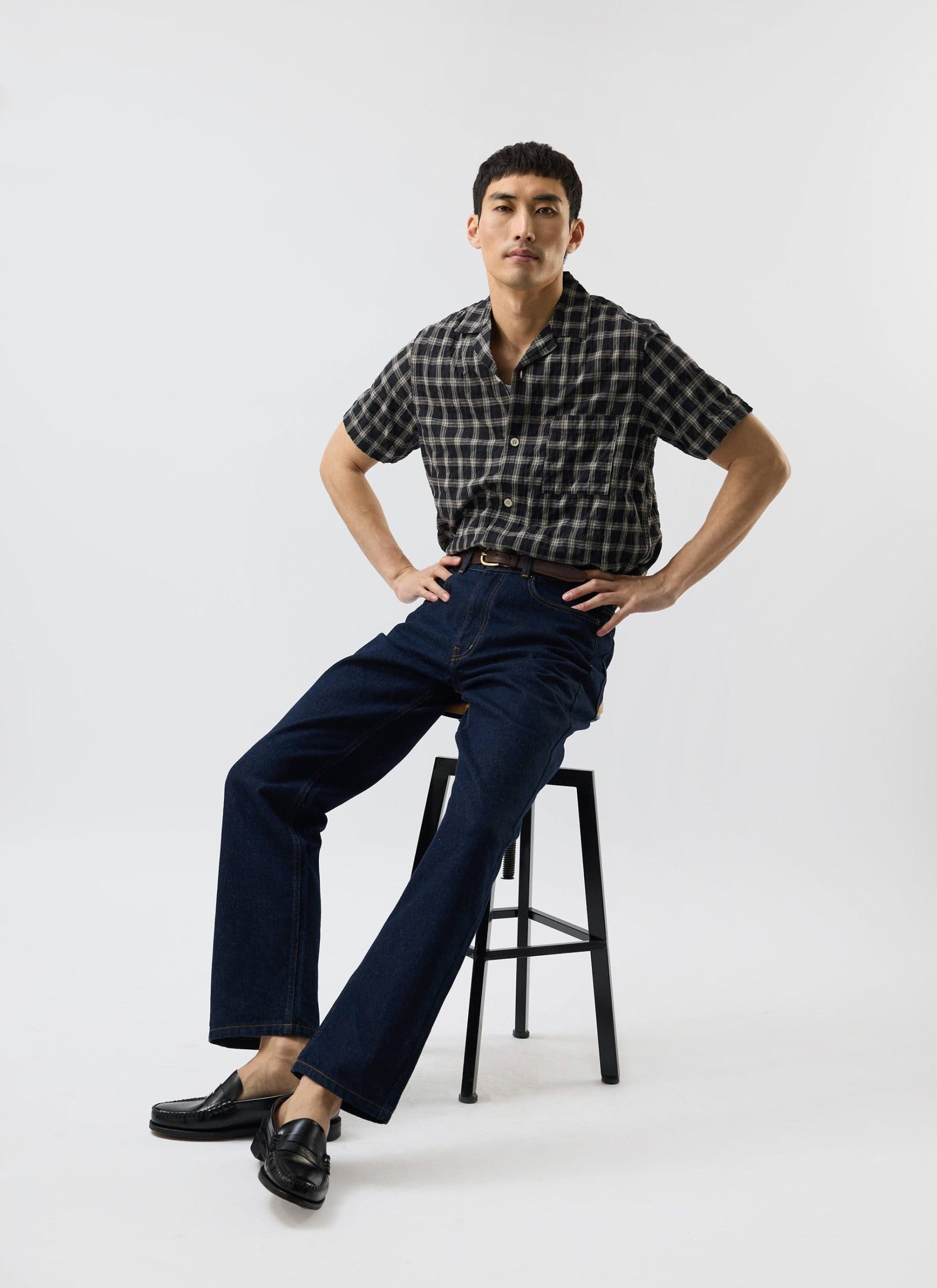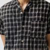 - Features: Men’s Checkered Cuban Collar Shirt in Black and White. Designed in a regular fit, this short sleeve shirt features custom Percival buttons, a chest patch pocket, and carefully constructed shoulders. Made from a premium 99% cotton blend, it’s breathable, lightweight, and ideal for warmer days. Versatile by design, it can be styled solo or layered with ease, an effortless addition to any modern wardrobe.