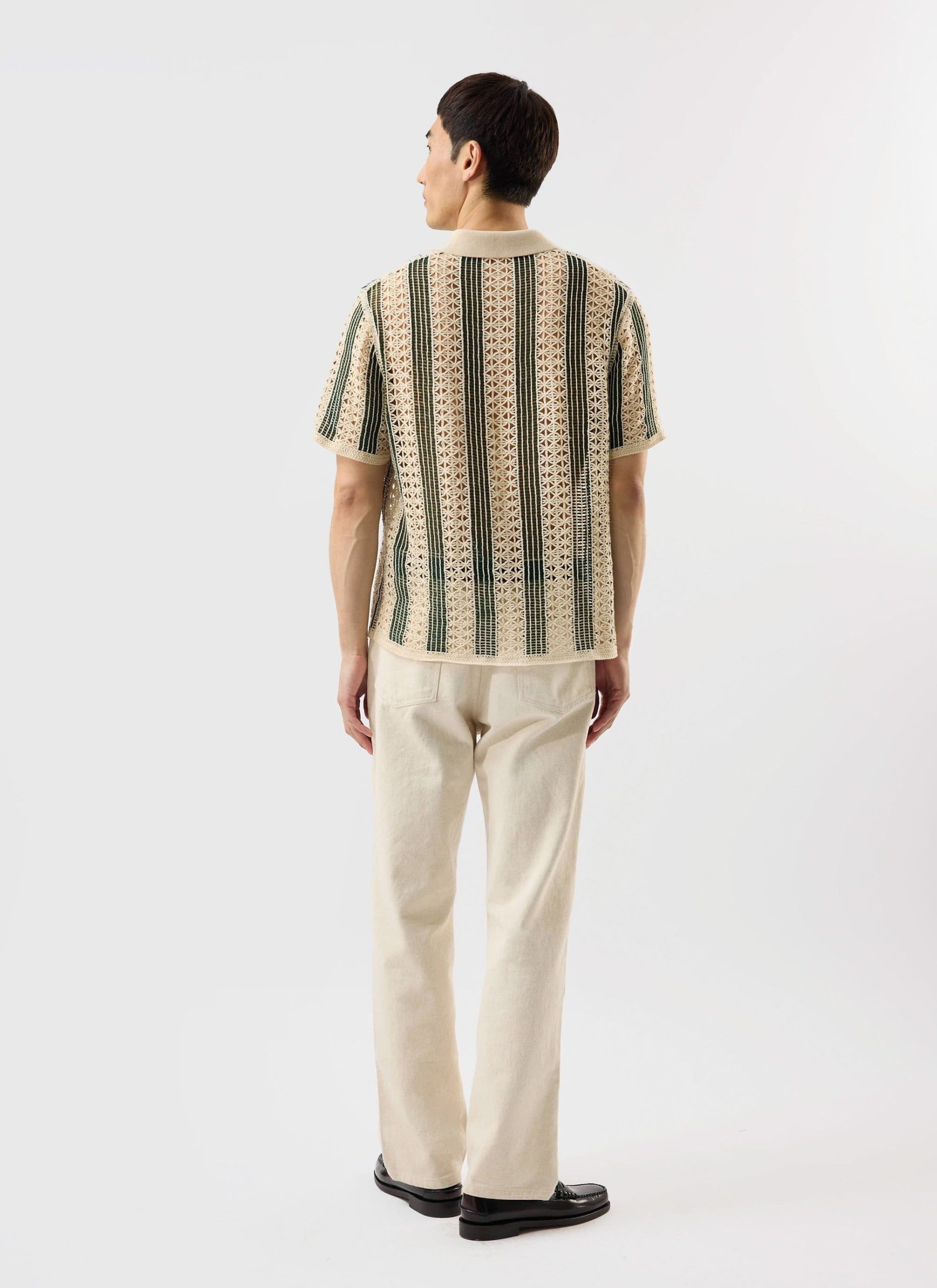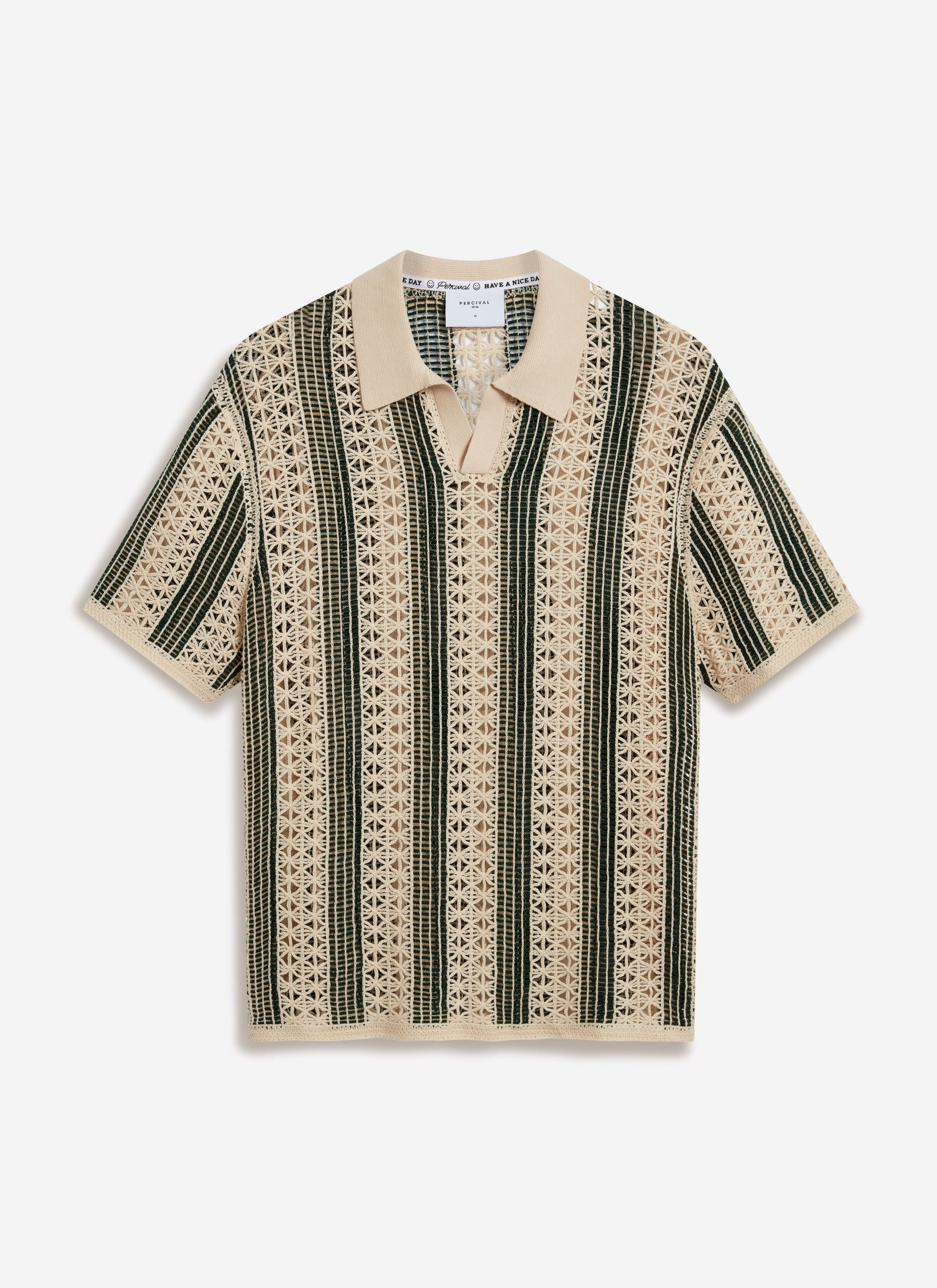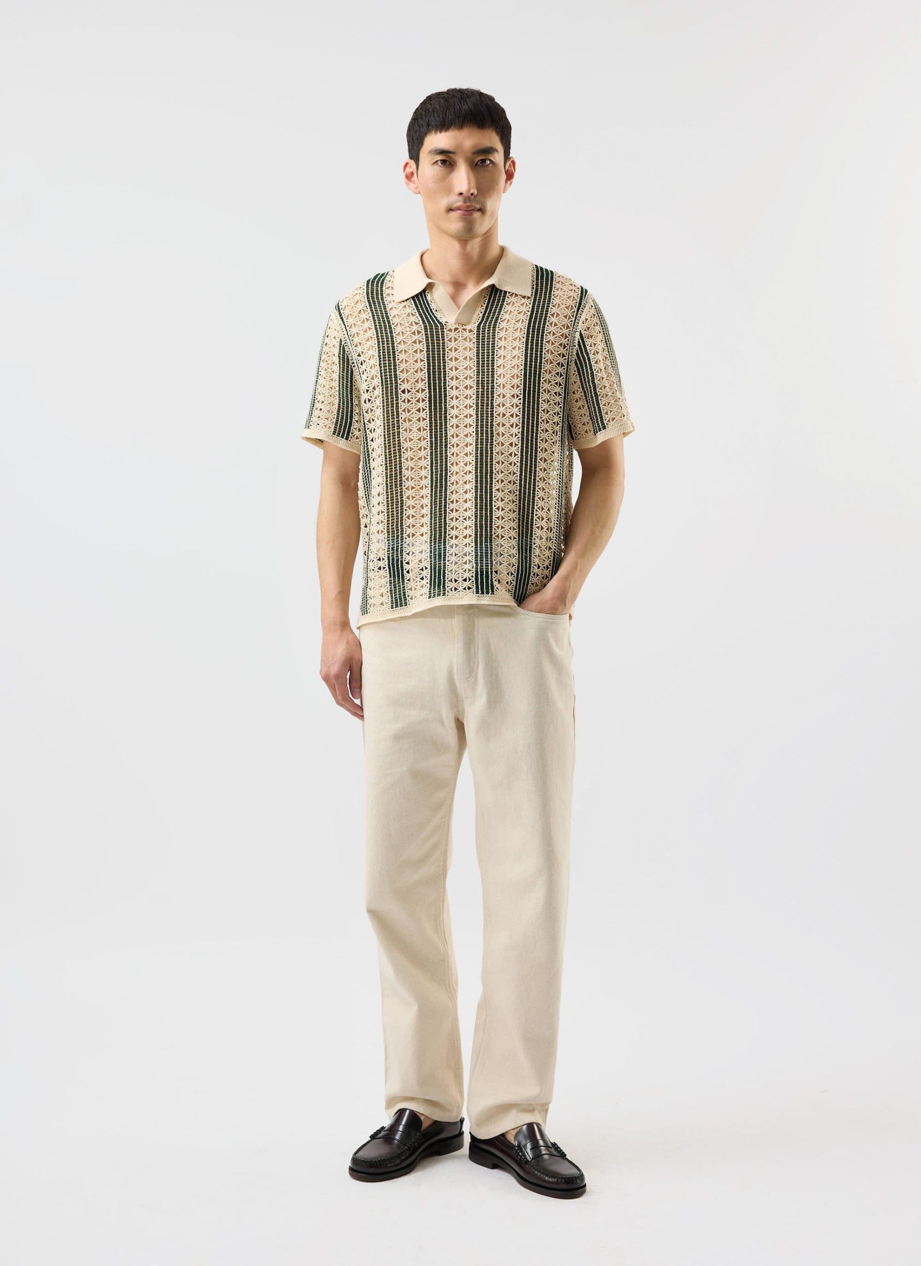 Percival Men’s Sarti Knitted Polo Shirt | Ecru With Forest