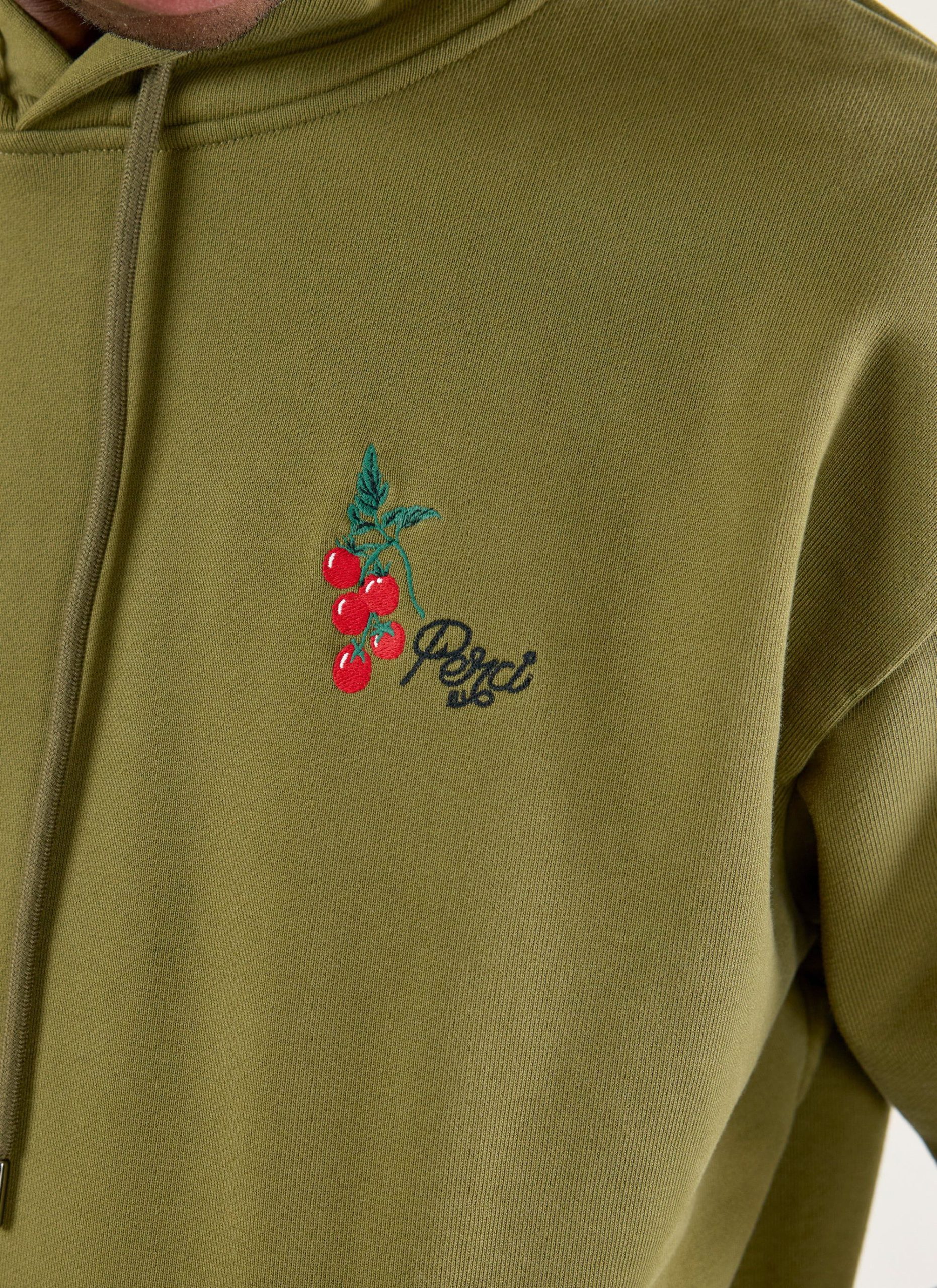 Percival Spring Summer season, full flavour, full Perci pomodoro. Vibrant colours, rich silhouettes, all wrapped up for lucky customers. Tomato tee, hand illustrated illustration with embroidery at chest, molto bene. Made from quality Portuguese organic cotton in a delectable 450gsm weight, value for monies.
