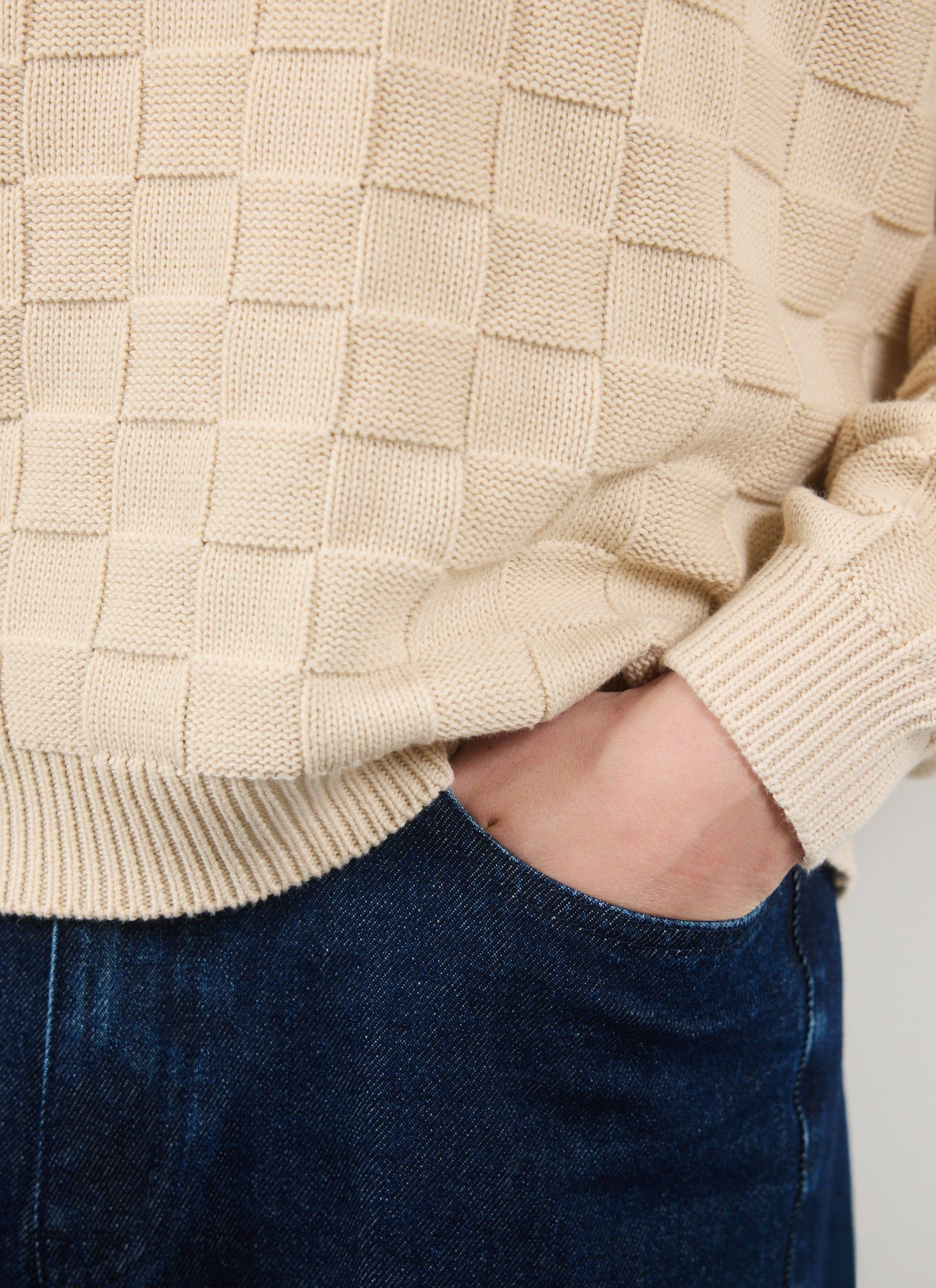 - Features: Men’s knitted jumper, textural weave, made in limited quantities, pairs well with Percival denim.