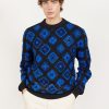 - Features: Men’s crew neck jumper made from 100% organic cotton. This blue jumper features a unique custom crochet design, perfect for making a bold style statement while staying comfortable in a regular fit. Ideal for layering in Autumn or as a standout piece in your wardrobe.