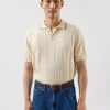 - Features: Men’s Knitted Polo Shirt in Ecru Cream, from the . Made from 100% cotton, this relaxed fit polo features vertical textured stripes, a ribbed collar, and refined detailing including a button down placket and subtle embroidered logo. Inspired by vintage polo styling, it’s a versatile piece ideal for the warmer months and transitions seamlessly into autumn.